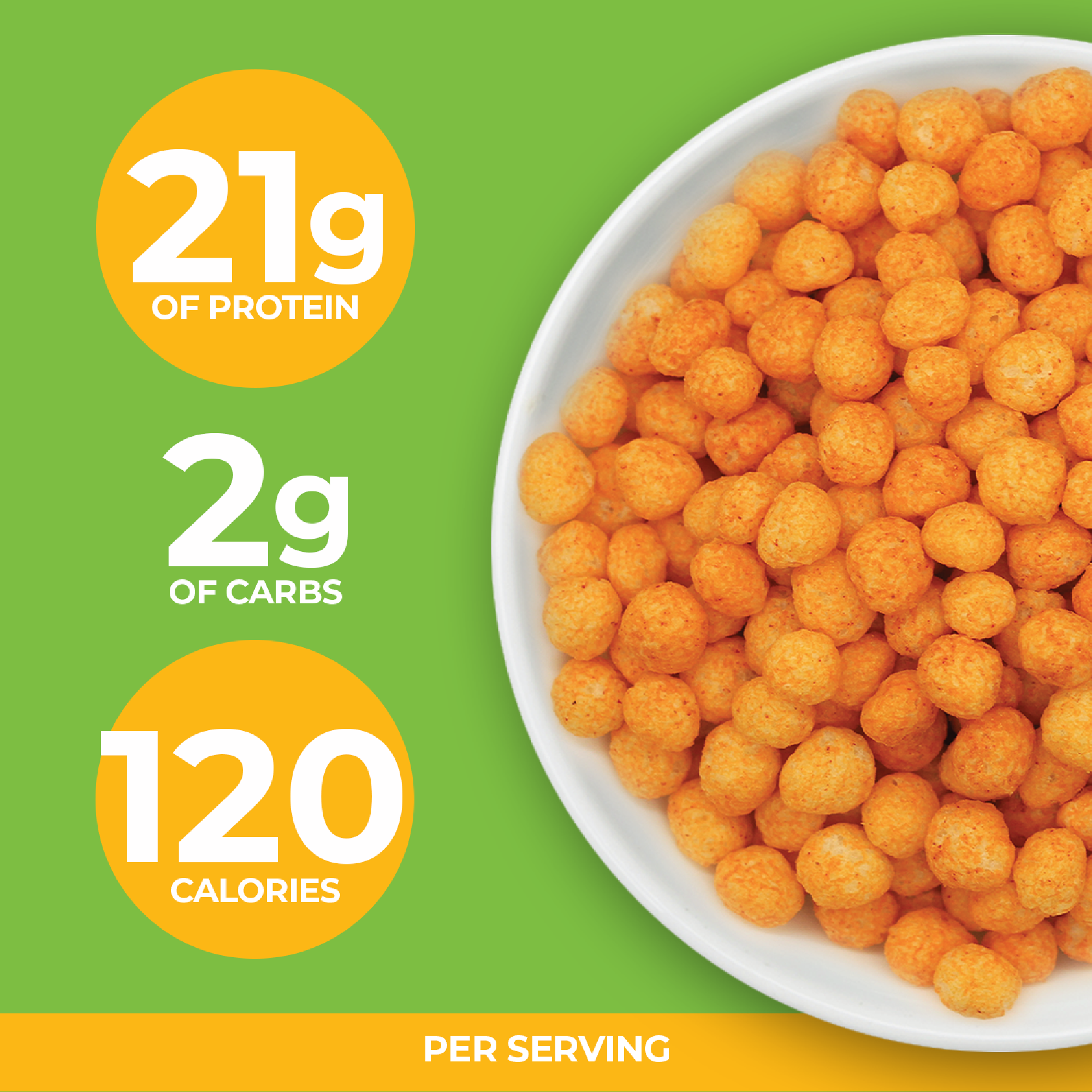 Each serving is a full cup of Protein Puffs, packed with 21g of protein to keep you satisfied. Unlike other low-carb snacks, these aren’t just a quick bite—they actually help curb hunger and keep you feeling full.