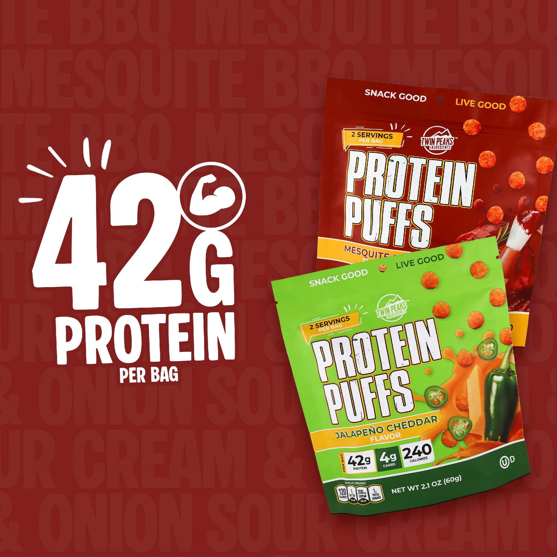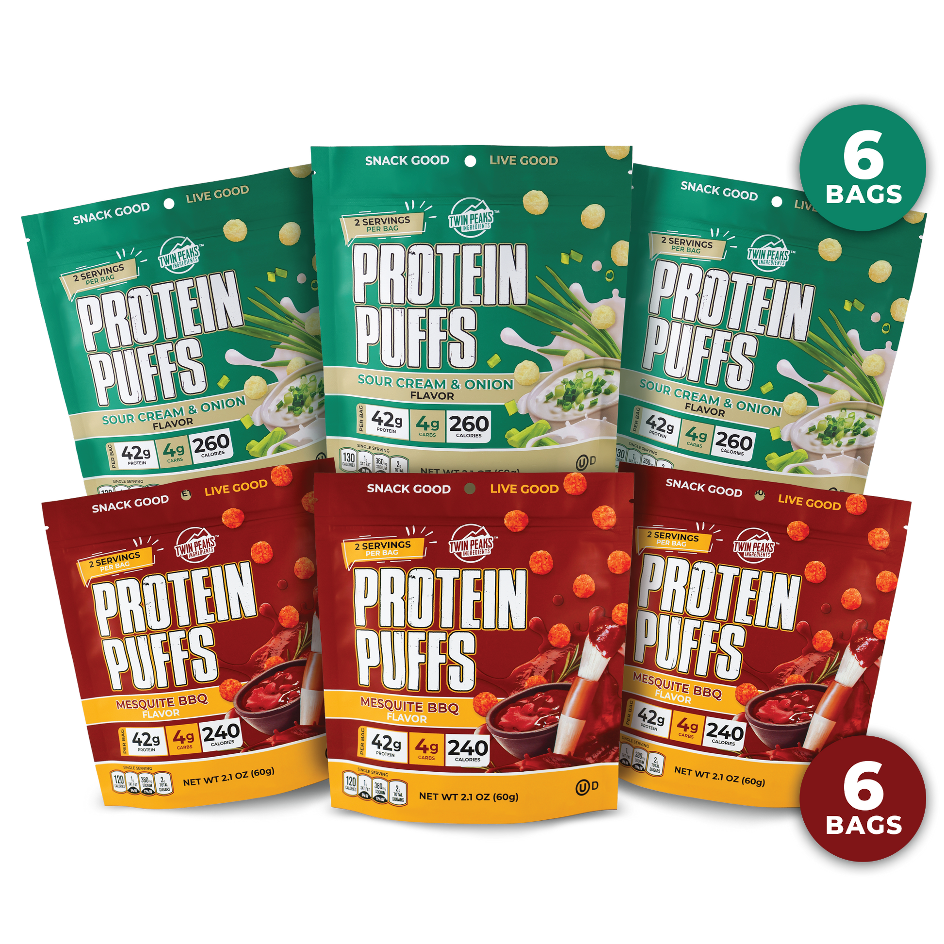 Compare a bag of chips to Twin Peaks Ingredients Protein Puffs. Game Over!