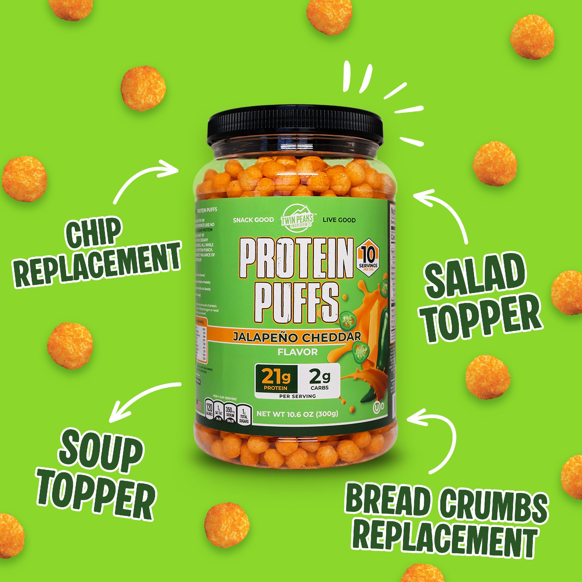 Compare a bag ofĀ chips to Twin Peaks Ingredients Protein Puffs. Game Over!