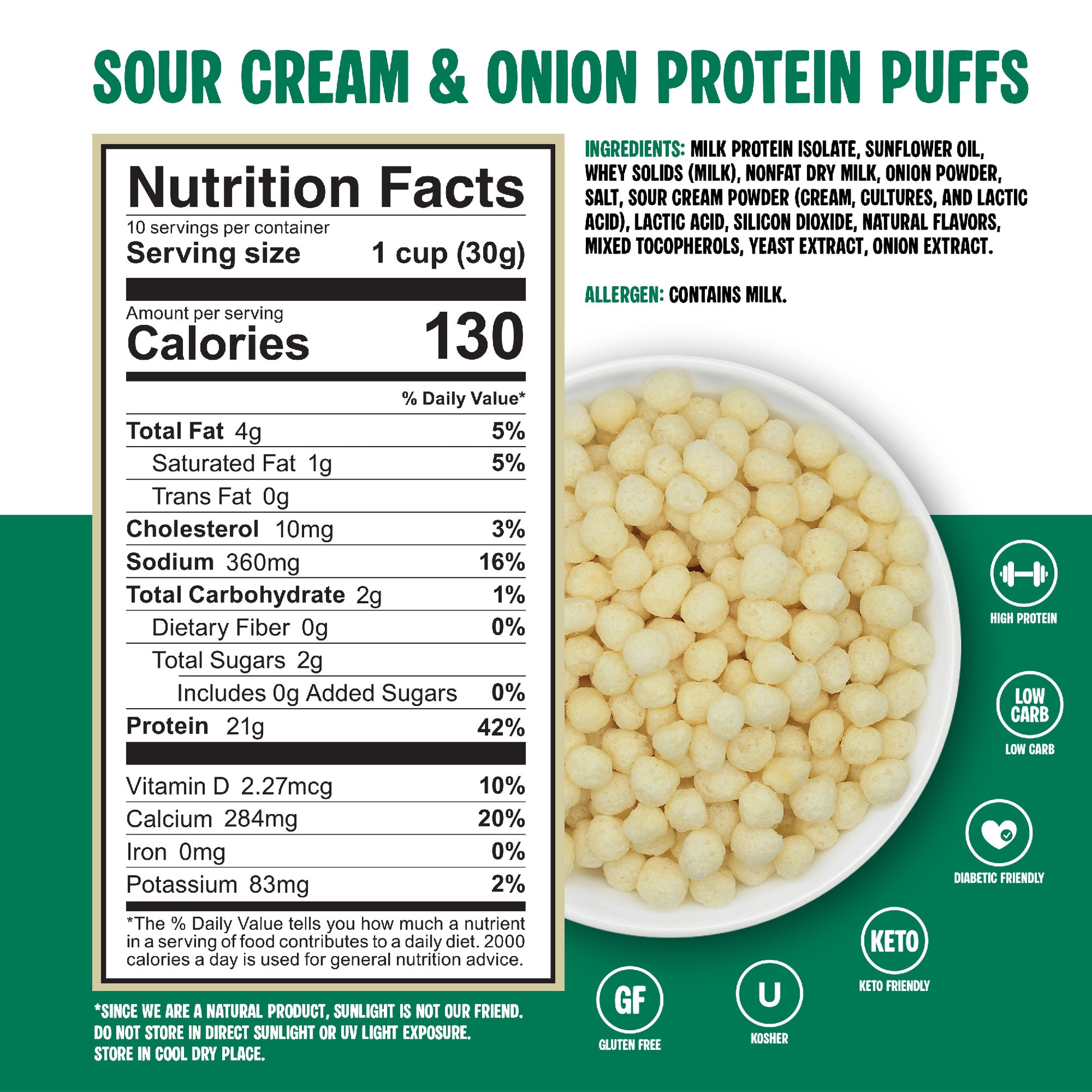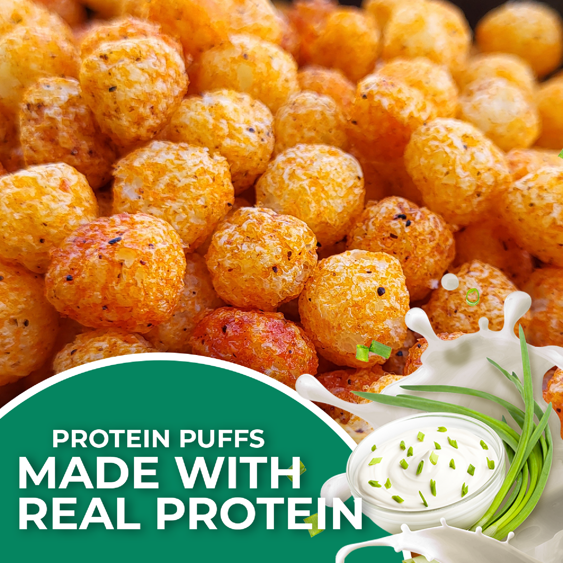 Our Protein Puffs are made from real protein, a 90% Milk Protein Isolate